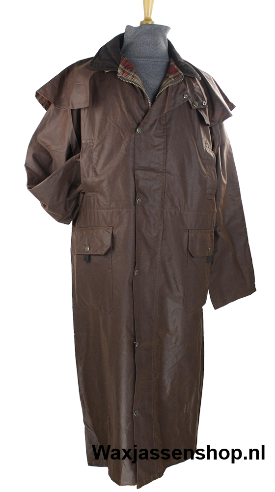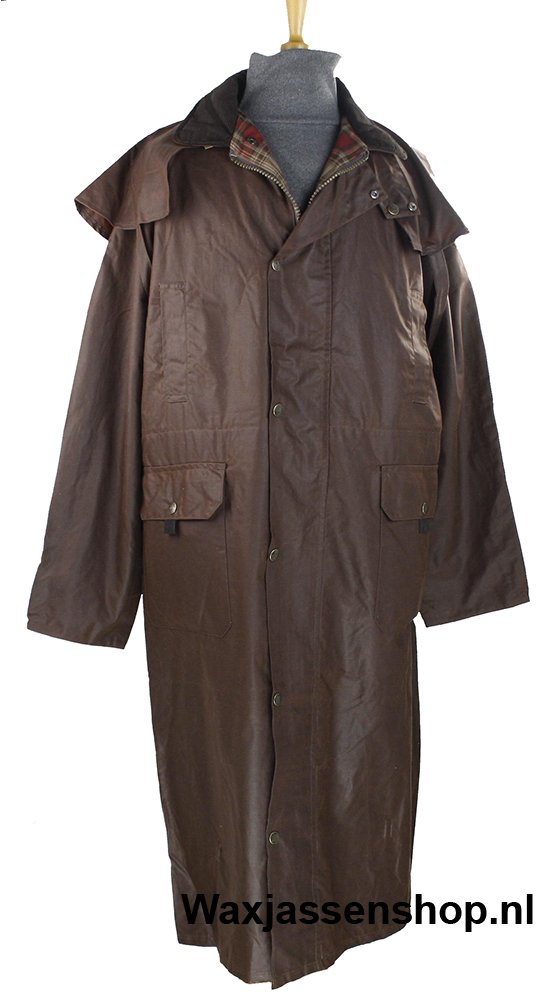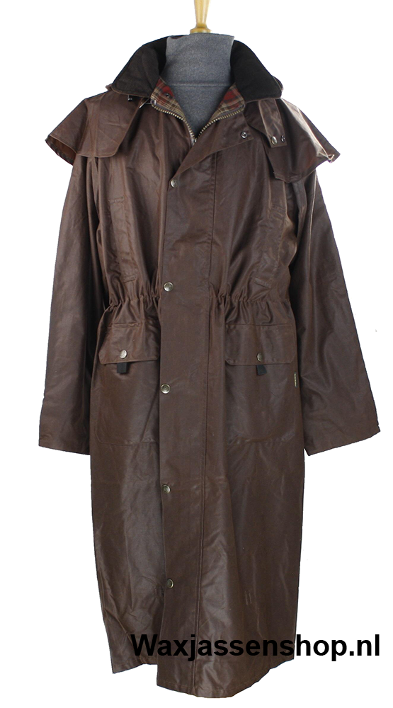 Lange waxjas gemaakt van Hunter waxdoek, waterdicht, geurvrij en ademend katoen, zeer goed model, luxe uitgevoerd. Geschikt voor bv. fietsen, paardrijden of wandelen met de hond.